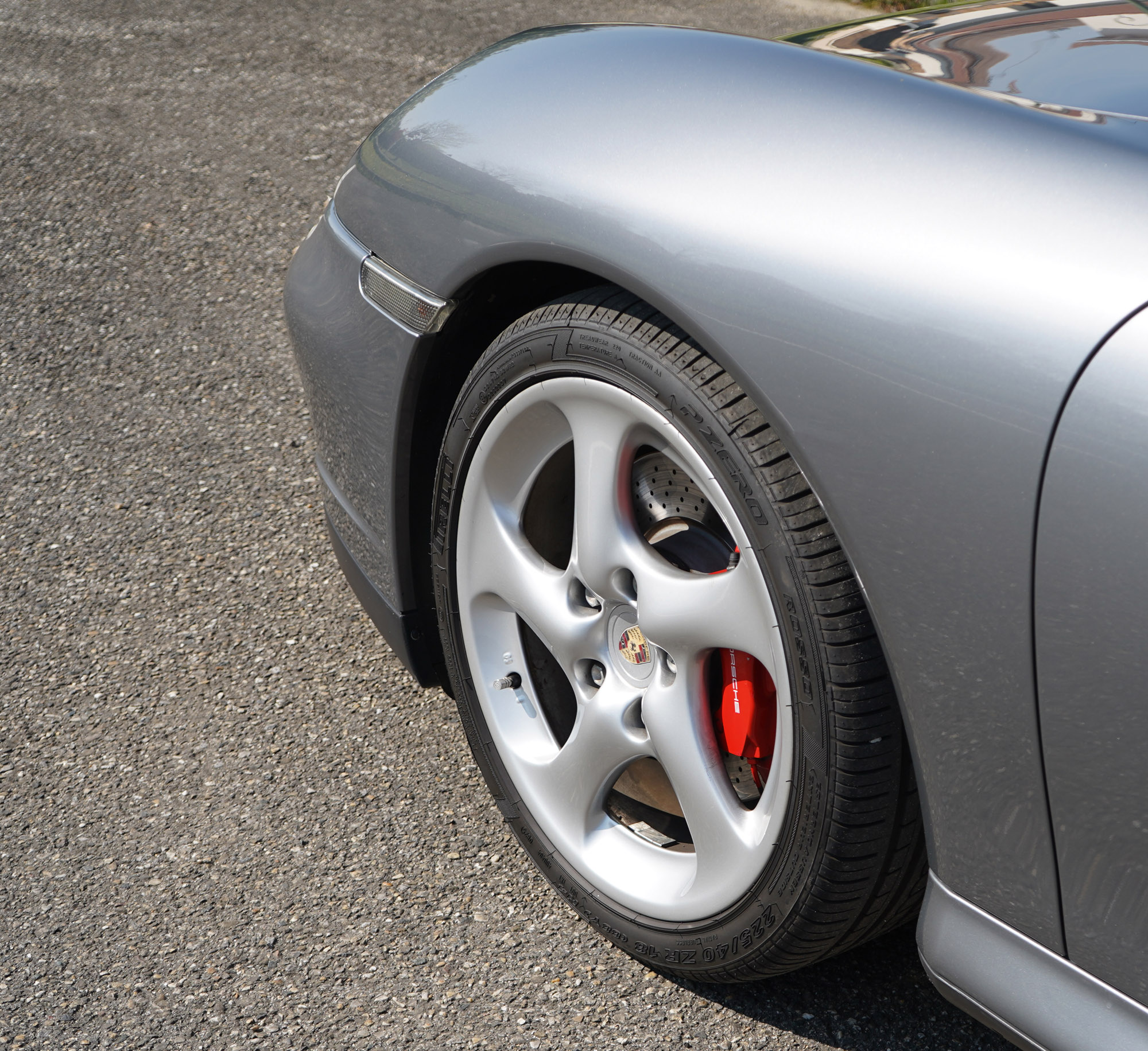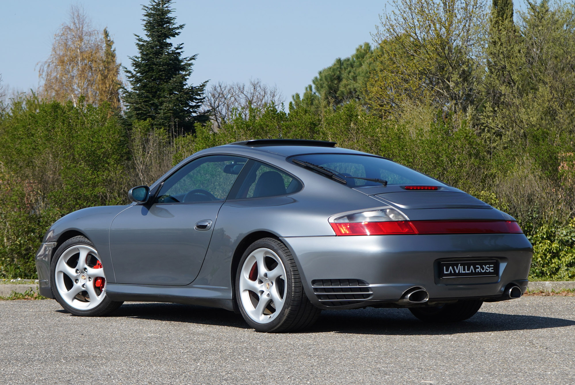 Une très belle 996 4S que nous venons de reprendre à un membre du cercle de La Villa Rose. Une configuration de couleur très appréciée pour sa sobriété et soulignant l'élégance des lignes de cette auto. La version 4S de la 996 adopte le châssis de la 996 Turbo avec cet arrière élargi mis en valeur par cette bande rouge reliant les 2 feux arrières.